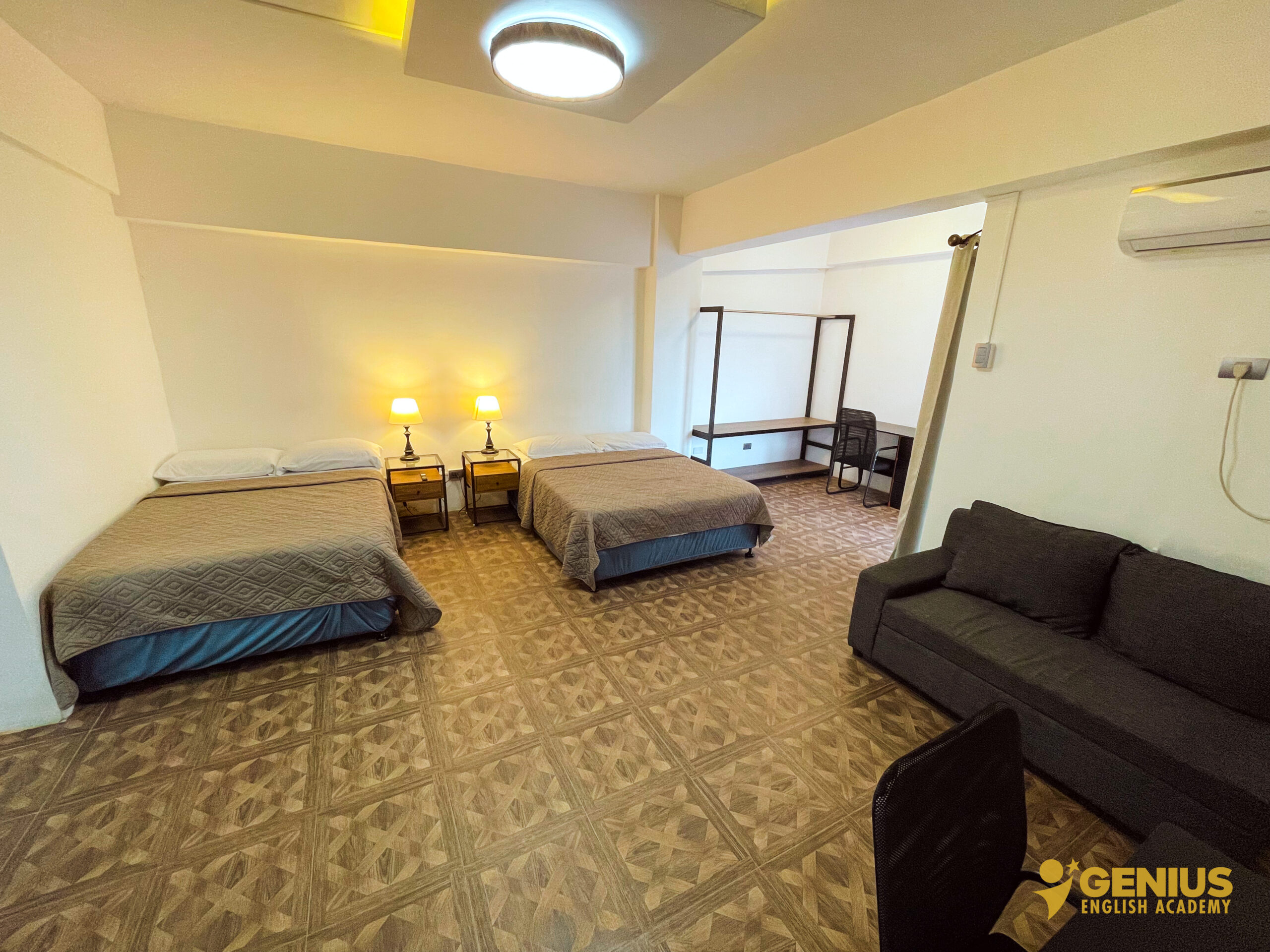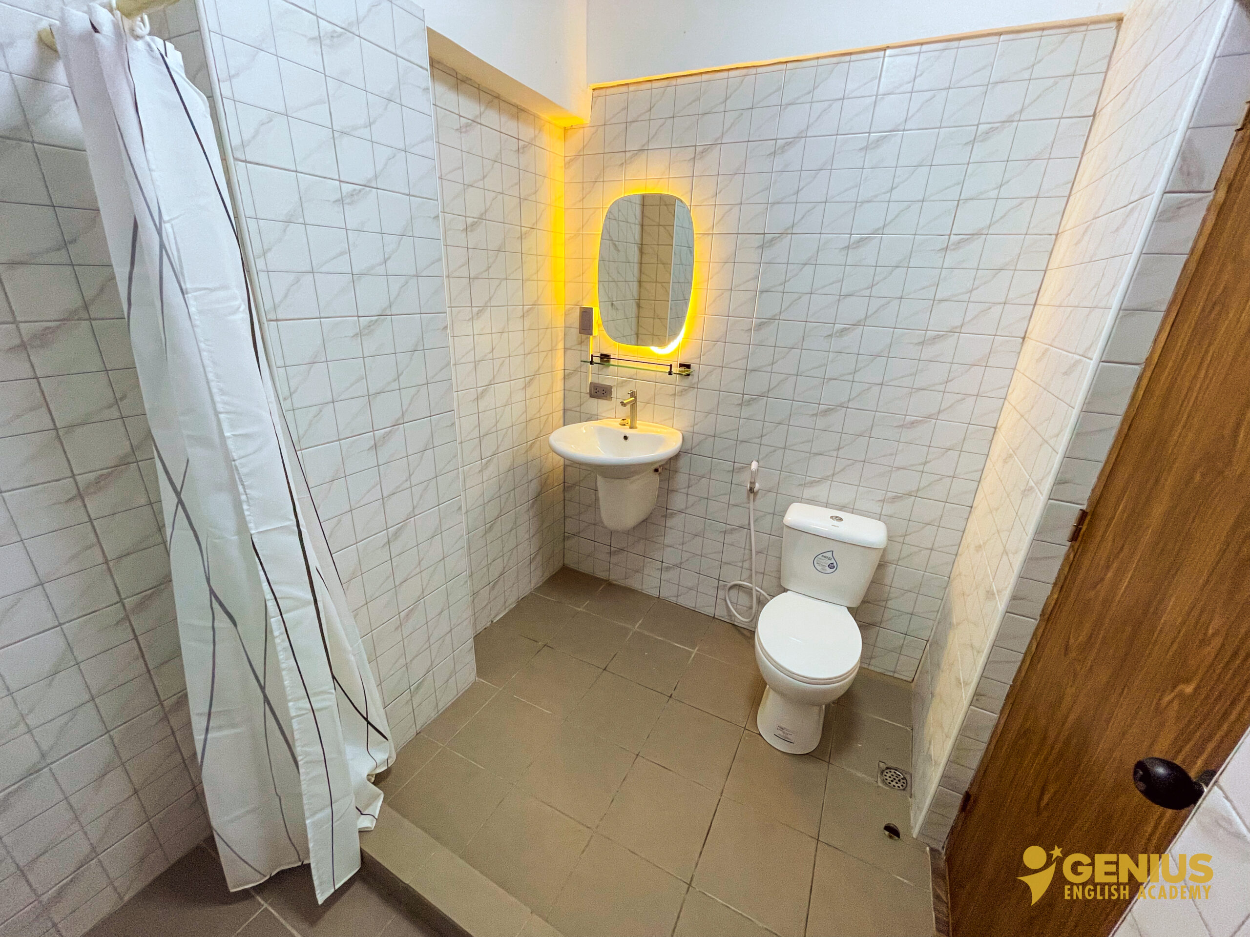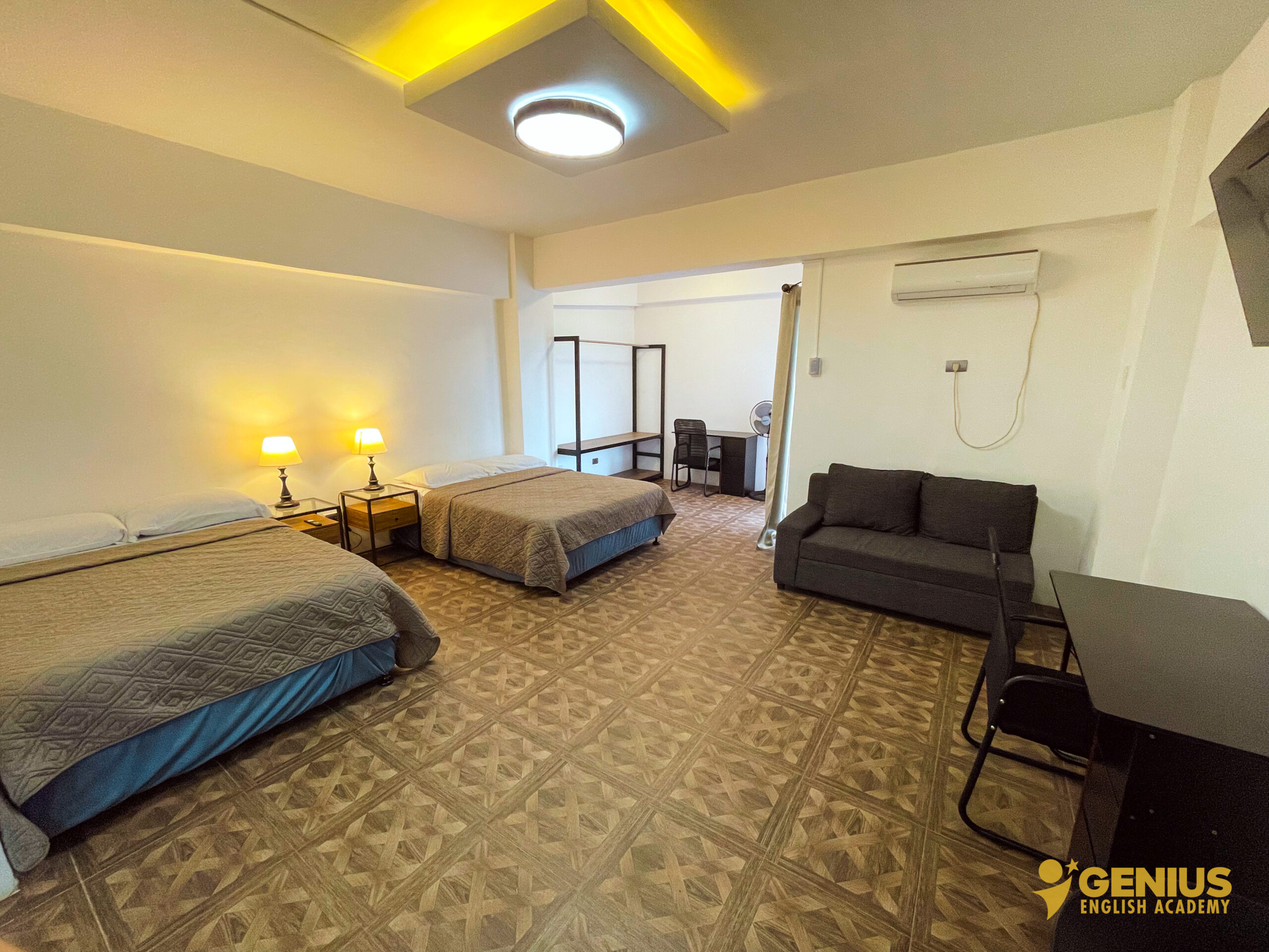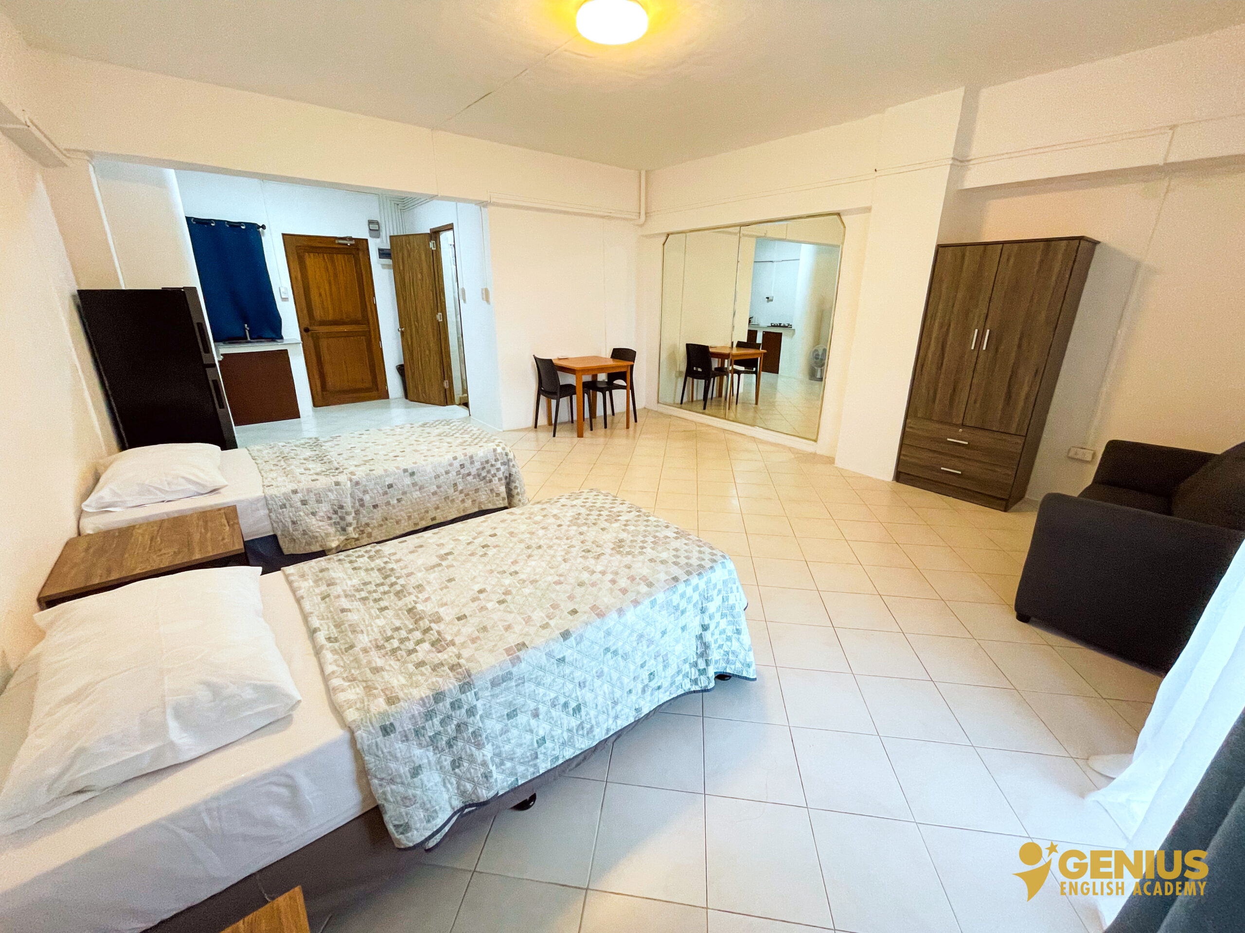 Genius English Academy-ийн өрөөнүүд нь тухтай бөгөөд бие даан суралцах орчинг бүрдүүлэх зорилгоор нягт нямбай зохион байгуулсан. Өрөө тус бүр хувийн гал тогоо, хөргөгч, агааржуулагч, Wi-Fi, болон амралтанд зориулагдсан өргөн тагттай. Халуун хүйтэн усны шүршүүр, мөн ус буцалгагч, сейф зэрэг нь нэмэлтээр хангагдана. Цэвэр усаар хязгааргүй хангадаг тул та байнга цэвэр усаа дүүргэх боломжтой. Гэрийн тав тухыг оюутны амьдралын чөлөөтэй хэв маягтай хослуулсан эдгээр өрөөнүүд нь оюутан болон гэр бүлд зориулсан тохилог, ая тухтай амьдрах орчны төгс шийдэл юм.