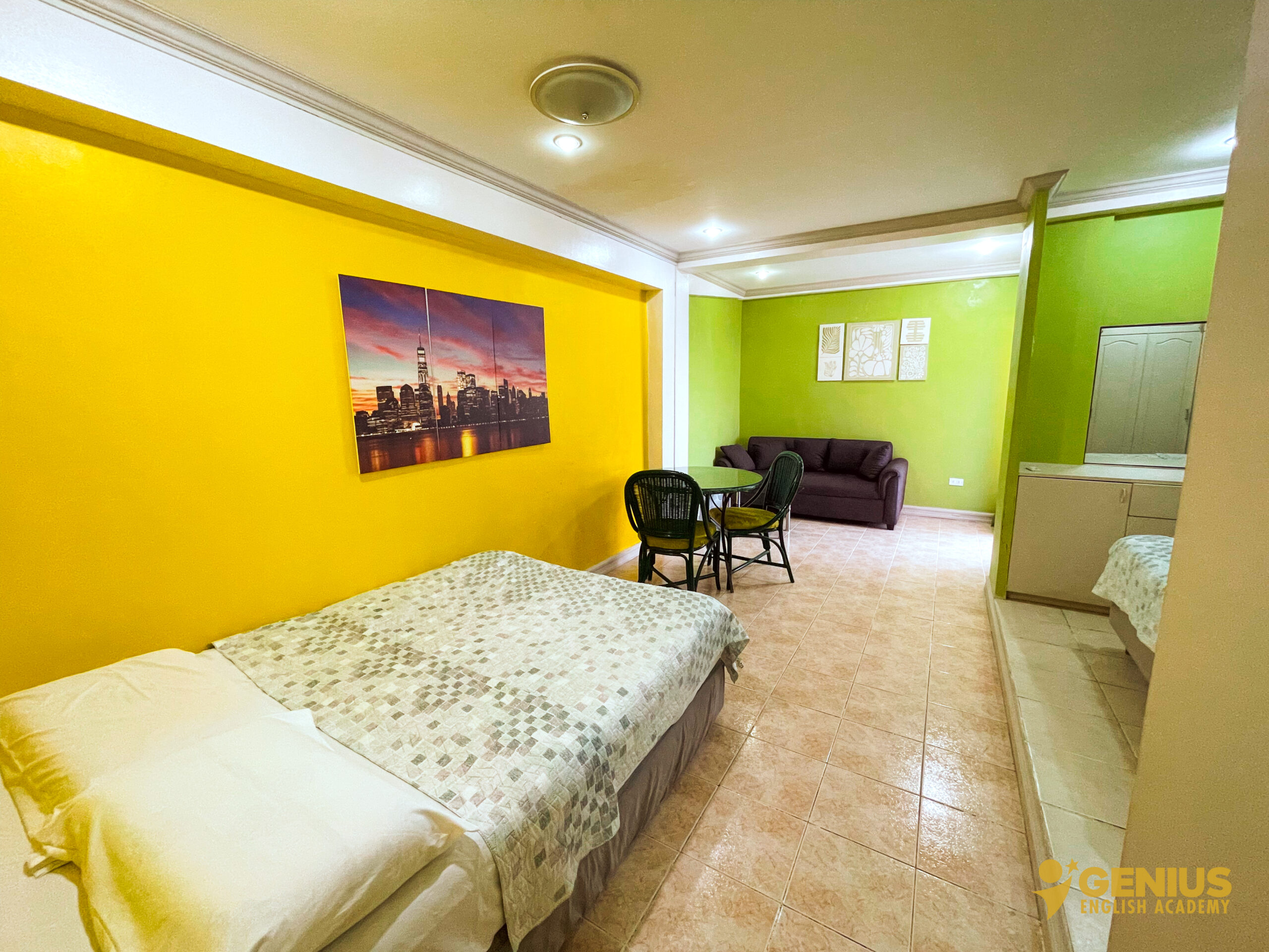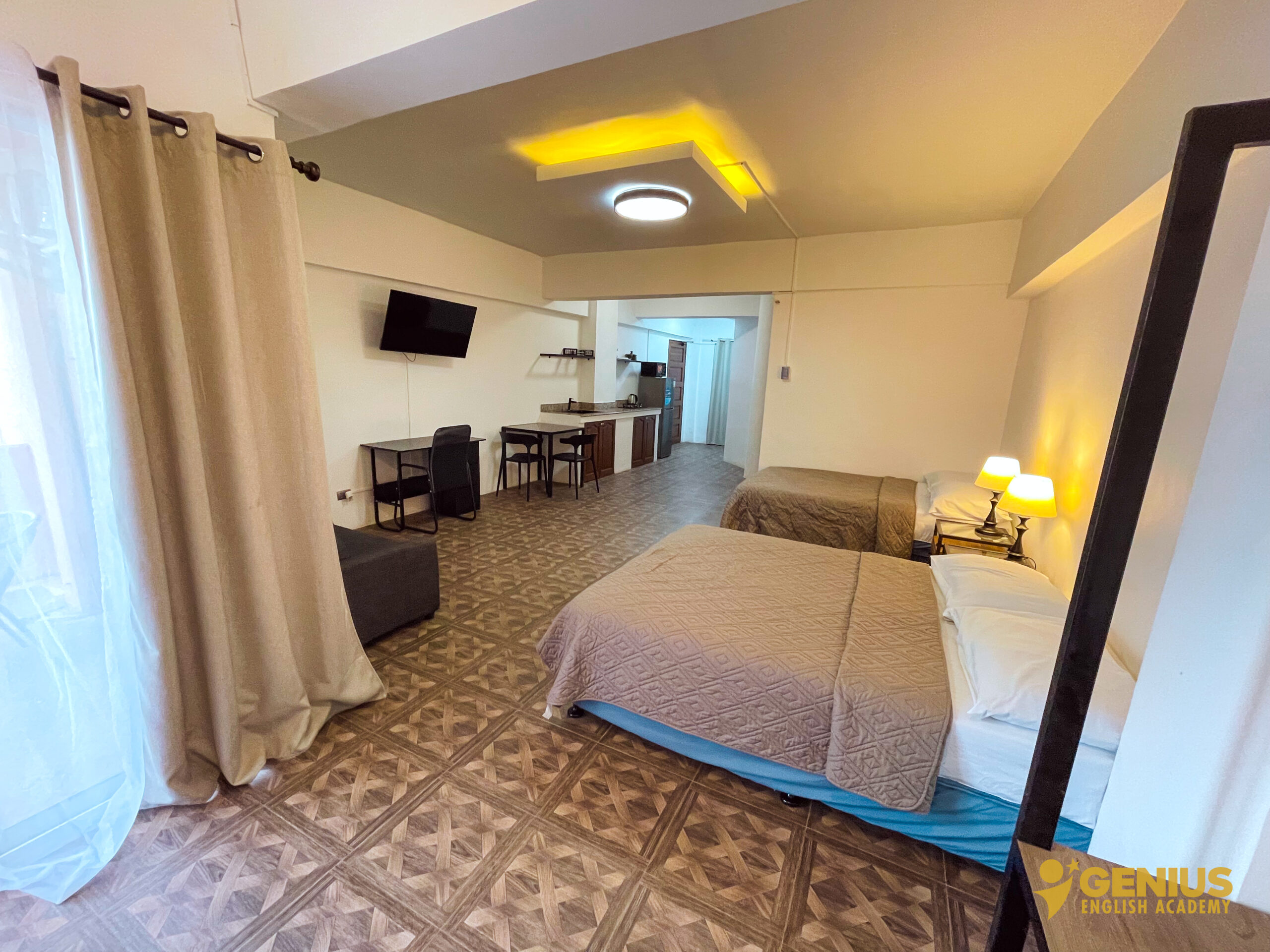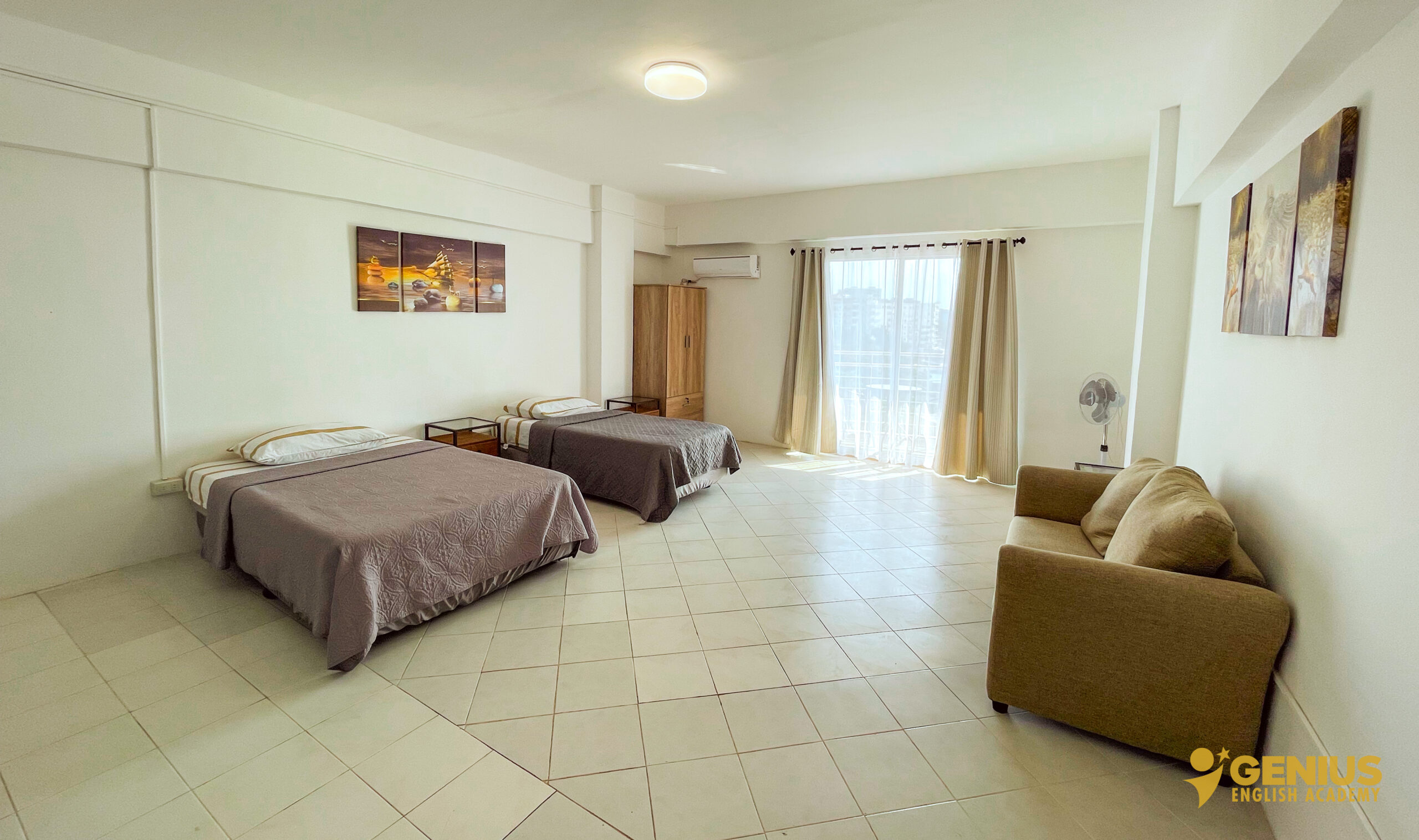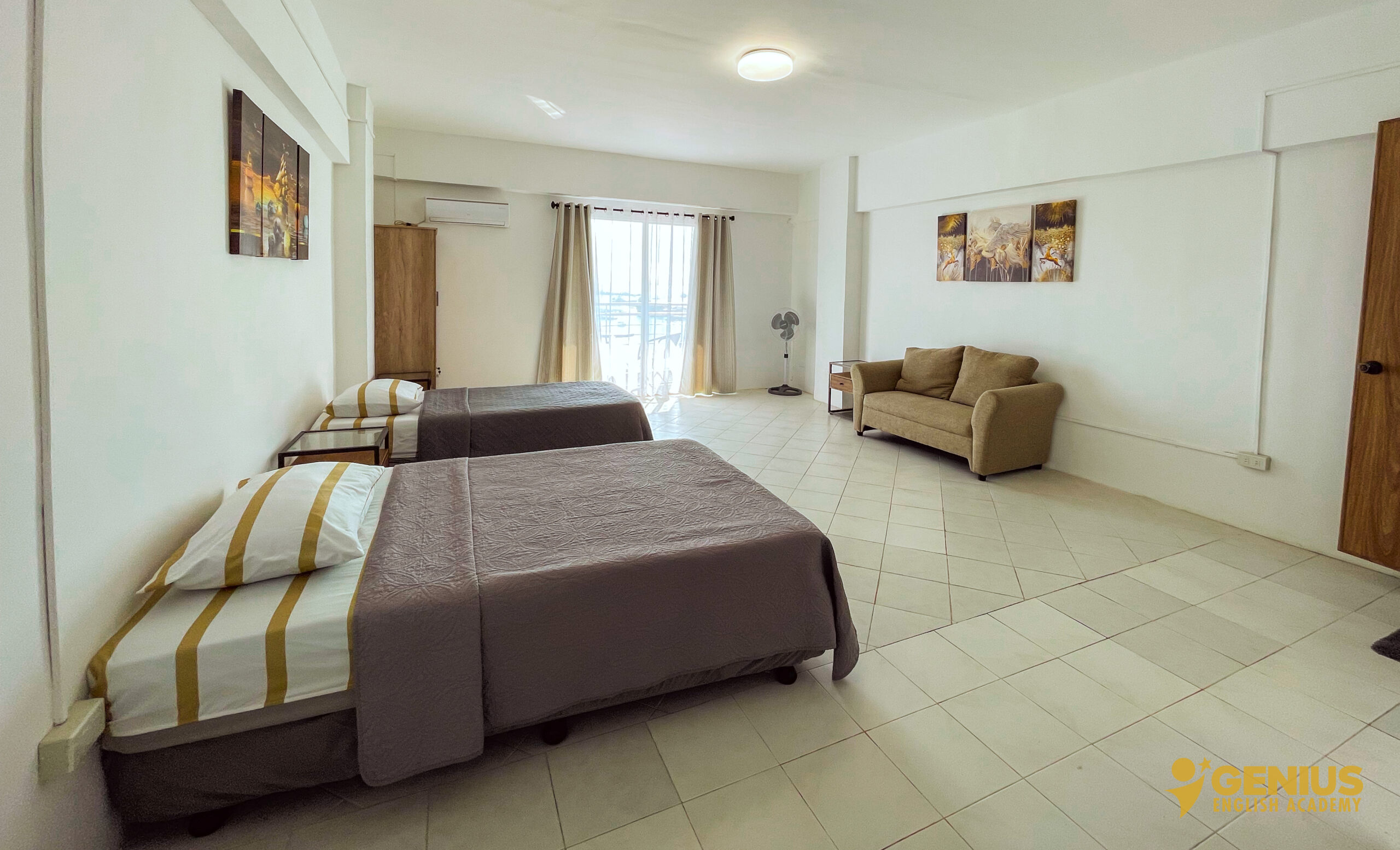 Genius English Academy-ийн өрөөнүүд нь тухтай бөгөөд бие даан суралцах орчинг бүрдүүлэх зорилгоор нягт нямбай зохион байгуулсан. Өрөө тус бүр хувийн гал тогоо, хөргөгч, агааржуулагч, Wi-Fi, болон амралтанд зориулагдсан өргөн тагттай. Халуун хүйтэн усны шүршүүр, мөн ус буцалгагч, сейф зэрэг нь нэмэлтээр хангагдана. Цэвэр усаар хязгааргүй хангадаг тул та байнга цэвэр усаа дүүргэх боломжтой. Гэрийн тав тухыг оюутны амьдралын чөлөөтэй хэв маягтай хослуулсан эдгээр өрөөнүүд нь оюутан болон гэр бүлд зориулсан тохилог, ая тухтай амьдрах орчны төгс шийдэл юм.