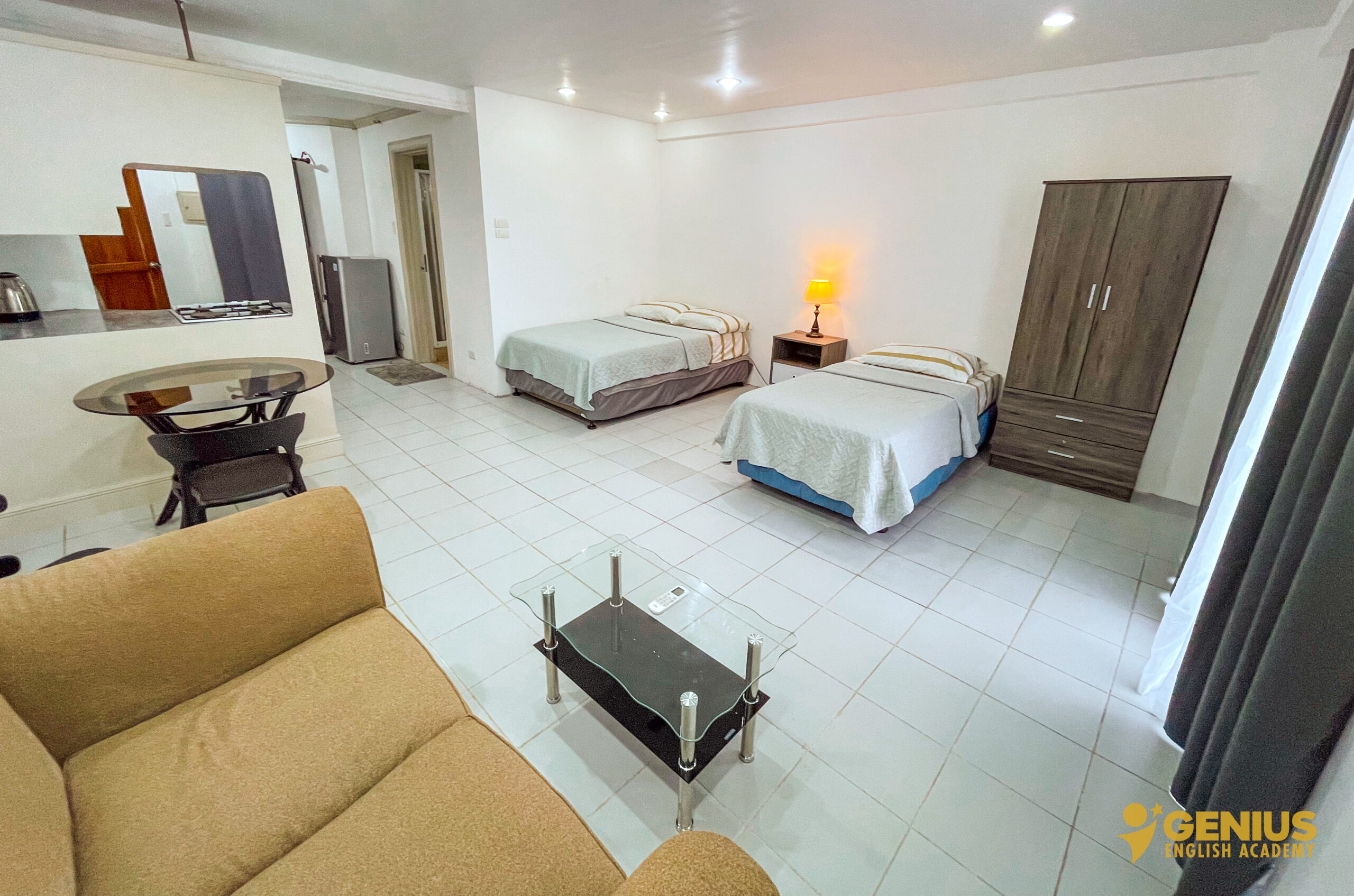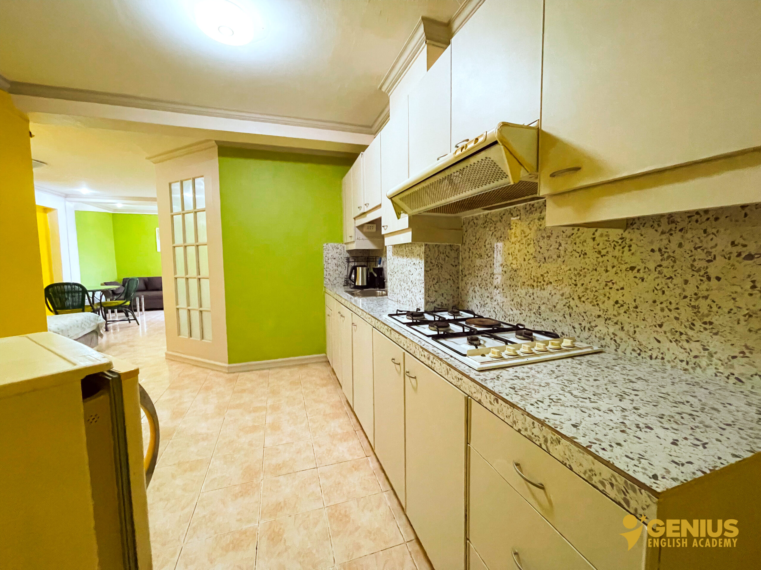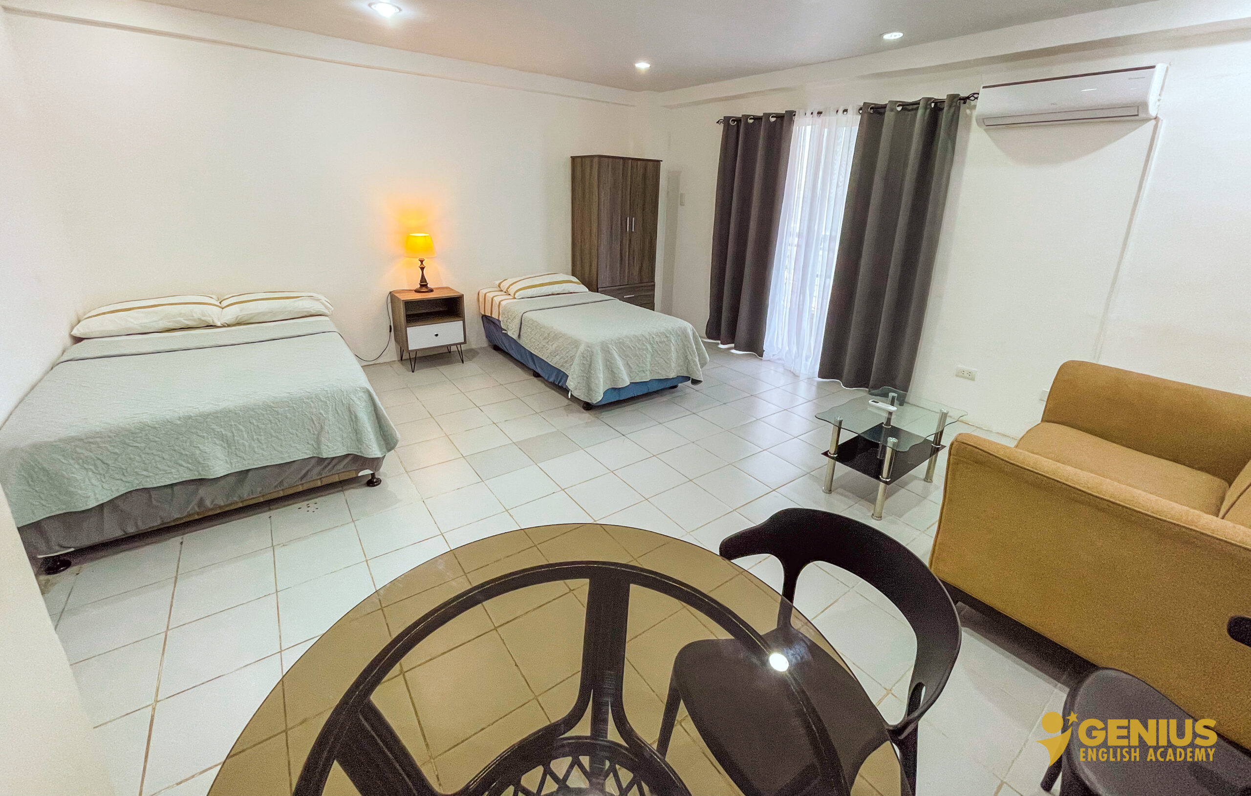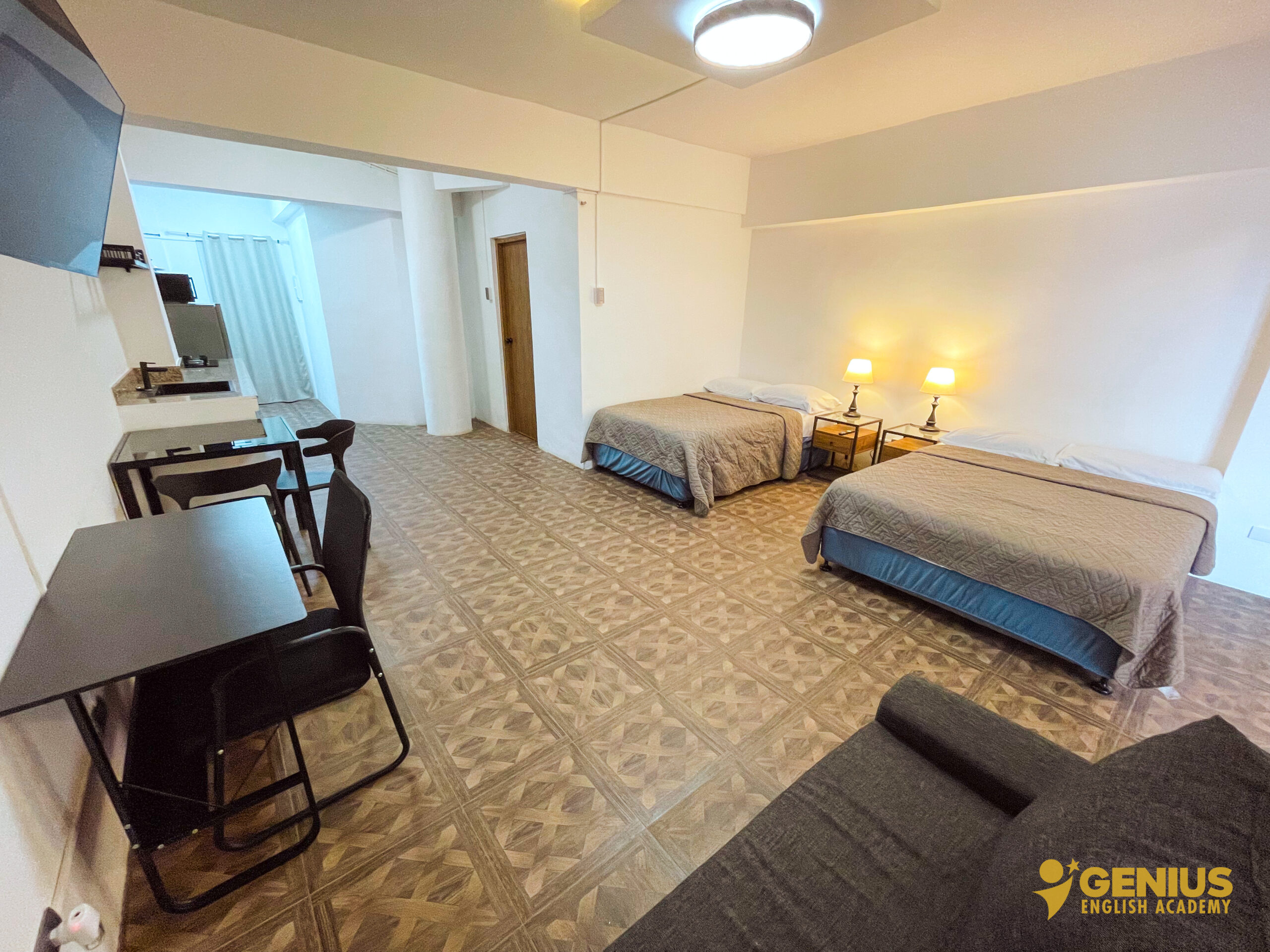 Genius English Academy-ийн өрөөнүүд нь тухтай бөгөөд бие даан суралцах орчинг бүрдүүлэх зорилгоор нягт нямбай зохион байгуулсан. Өрөө тус бүр хувийн гал тогоо, хөргөгч, агааржуулагч, Wi-Fi, болон амралтанд зориулагдсан өргөн тагттай. Халуун хүйтэн усны шүршүүр, мөн ус буцалгагч, сейф зэрэг нь нэмэлтээр хангагдана. Цэвэр усаар хязгааргүй хангадаг тул та байнга цэвэр усаа дүүргэх боломжтой. Гэрийн тав тухыг оюутны амьдралын чөлөөтэй хэв маягтай хослуулсан эдгээр өрөөнүүд нь оюутан болон гэр бүлд зориулсан тохилог, ая тухтай амьдрах орчны төгс шийдэл юм.