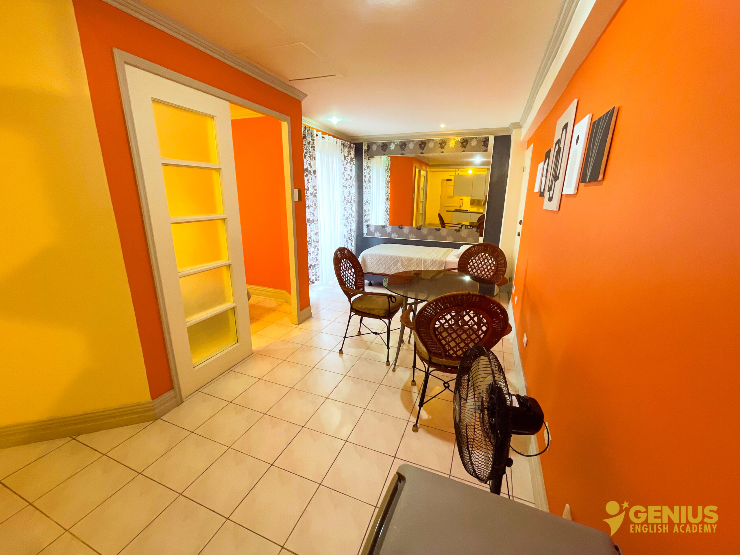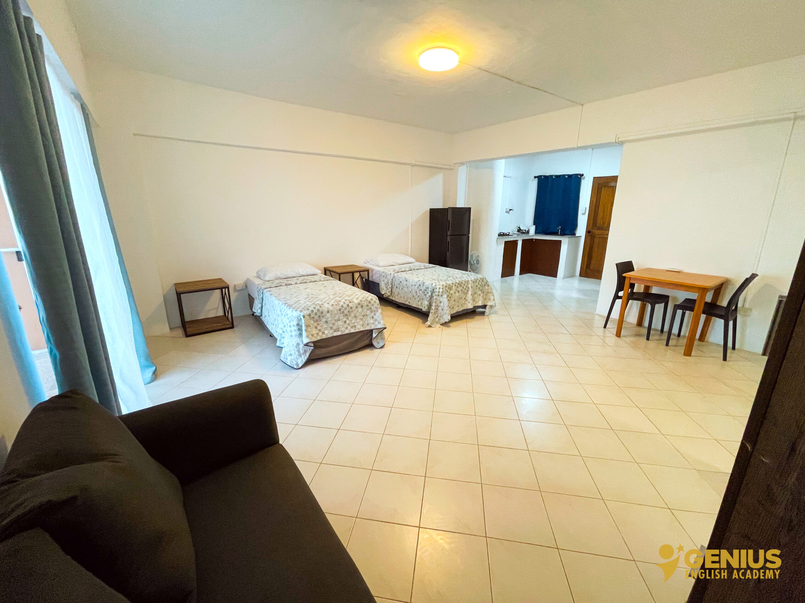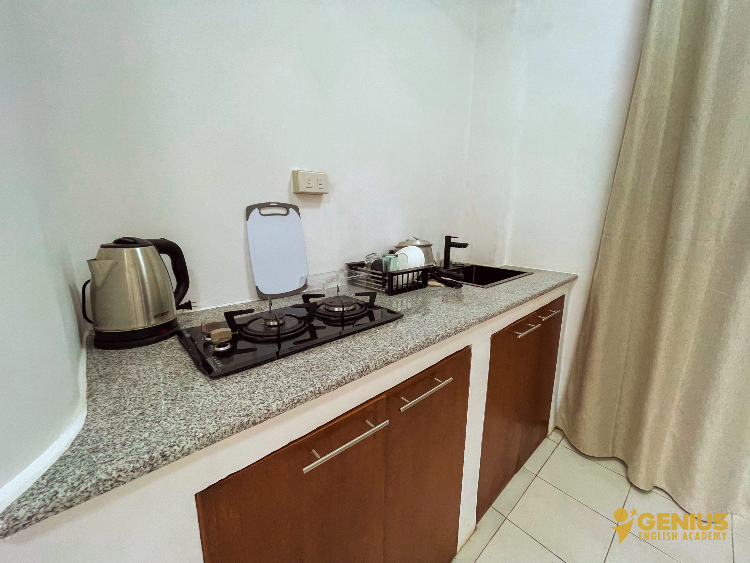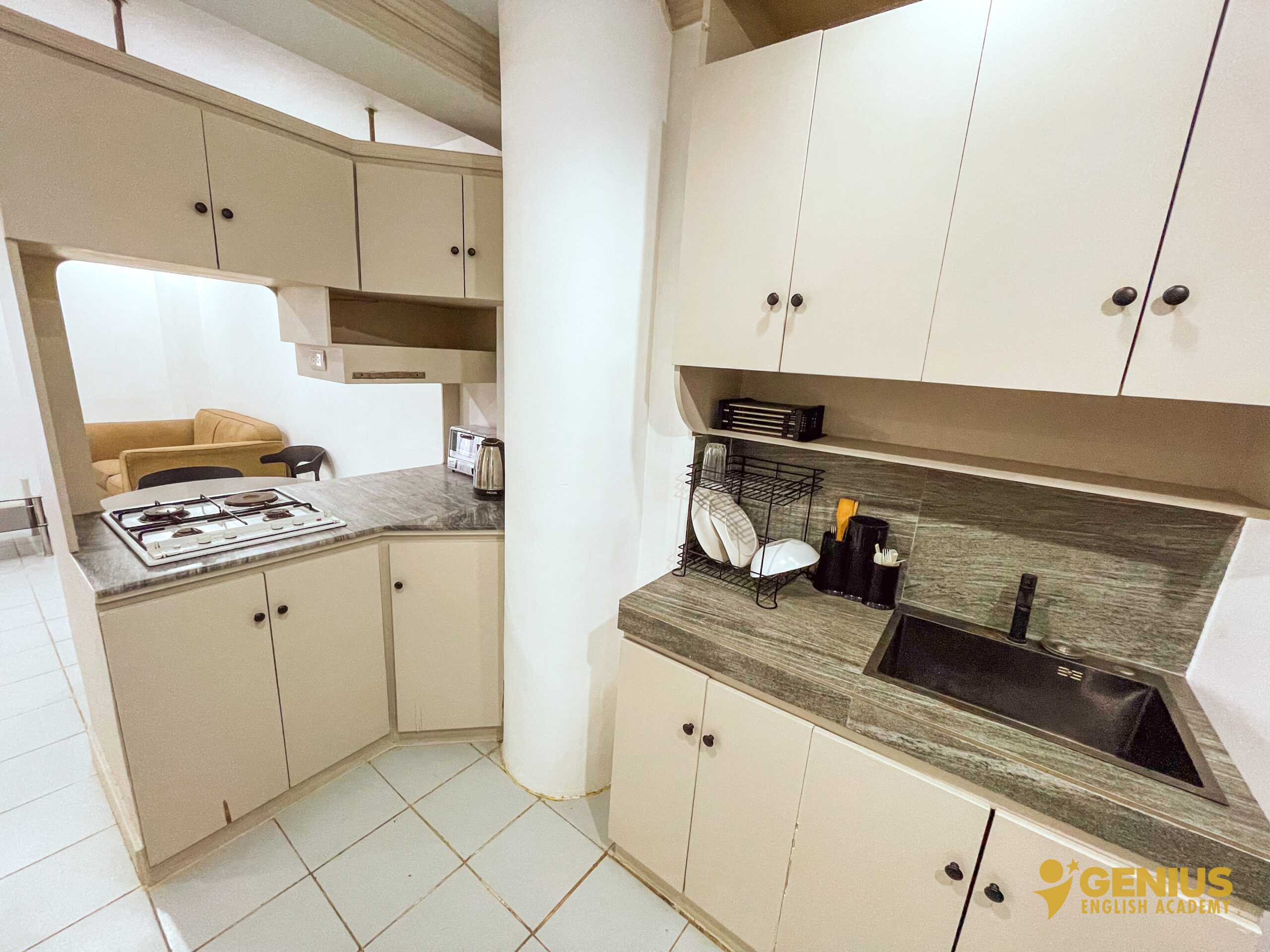 Genius English Academy-ийн өрөөнүүд нь тухтай бөгөөд бие даан суралцах орчинг бүрдүүлэх зорилгоор нягт нямбай зохион байгуулсан. Өрөө тус бүр хувийн гал тогоо, хөргөгч, агааржуулагч, Wi-Fi, болон амралтанд зориулагдсан өргөн тагттай. Халуун хүйтэн усны шүршүүр, мөн ус буцалгагч, сейф зэрэг нь нэмэлтээр хангагдана. Цэвэр усаар хязгааргүй хангадаг тул та байнга цэвэр усаа дүүргэх боломжтой. Гэрийн тав тухыг оюутны амьдралын чөлөөтэй хэв маягтай хослуулсан эдгээр өрөөнүүд нь оюутан болон гэр бүлд зориулсан тохилог, ая тухтай амьдрах орчны төгс шийдэл юм.